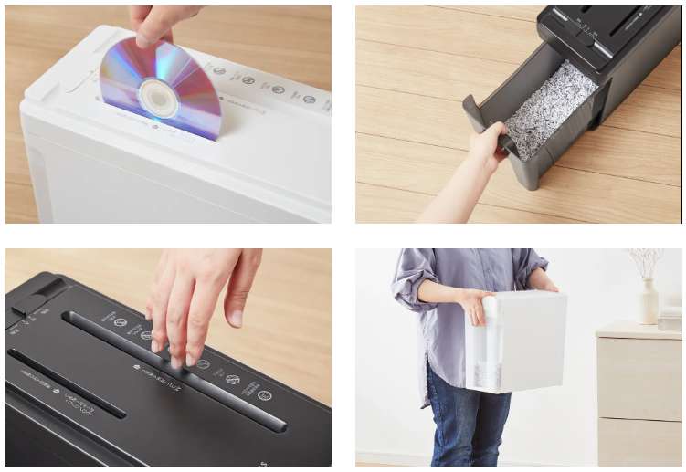 ●最大細断枚数:A4コピー用紙 4枚 / CD・カード 1枚